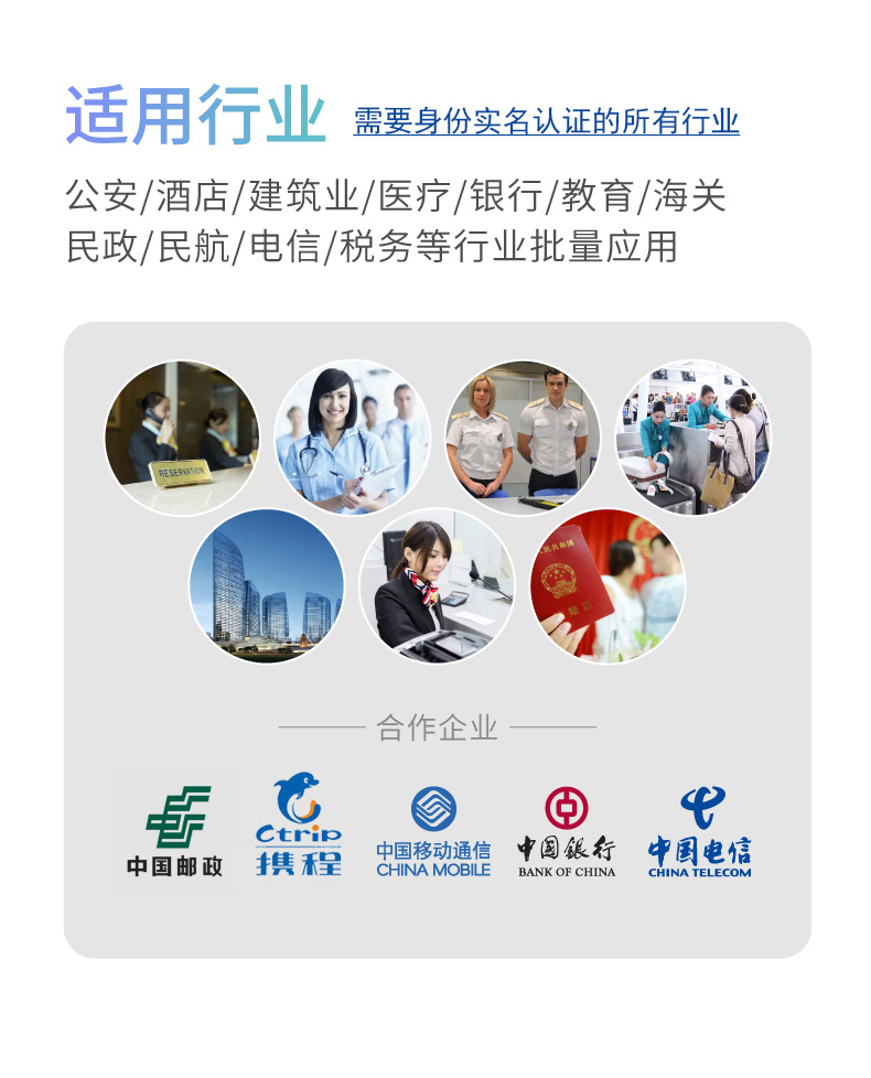 1, 金融系統(tǒng):卡戶,銷戶業(yè)務(wù)辦理,客戶身份核驗(yàn)。 2, 公安系統(tǒng):身份證申/換領(lǐng),變更住址,人口管理,出入境等。